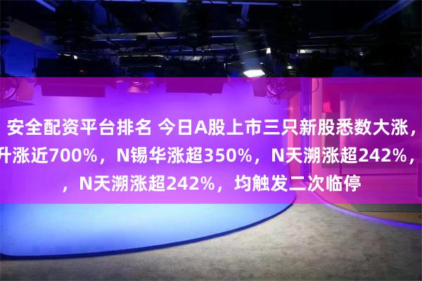 安全配资平台排名 今日A股上市三只新股悉数大涨,N纳百川一度拉升涨近700%,N锡华涨超350%,N天溯涨超242%,均触发二次临停